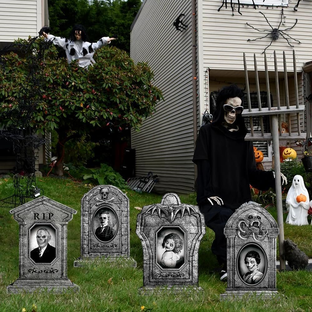 Graveyard Tombstones with 3D Lenticular Faces (4-Pack)