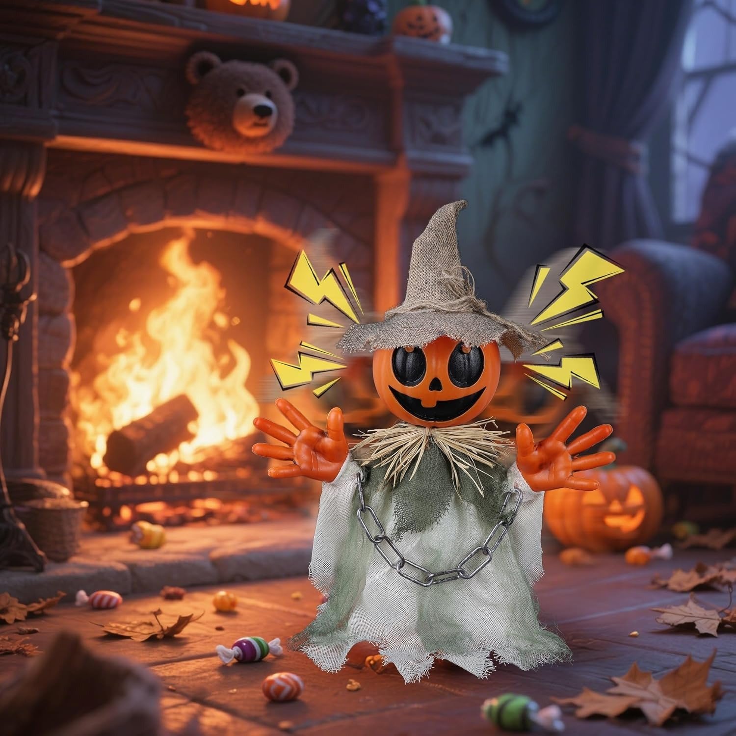 This 16″ animated pumpkin ghost walks, floats, and moans with spooky sound effects when you or your guests shout or touch it. Small enough for porches or indoor setups, big enough to get a jump scare—this ghost is funny-cute and festive spooky in one.